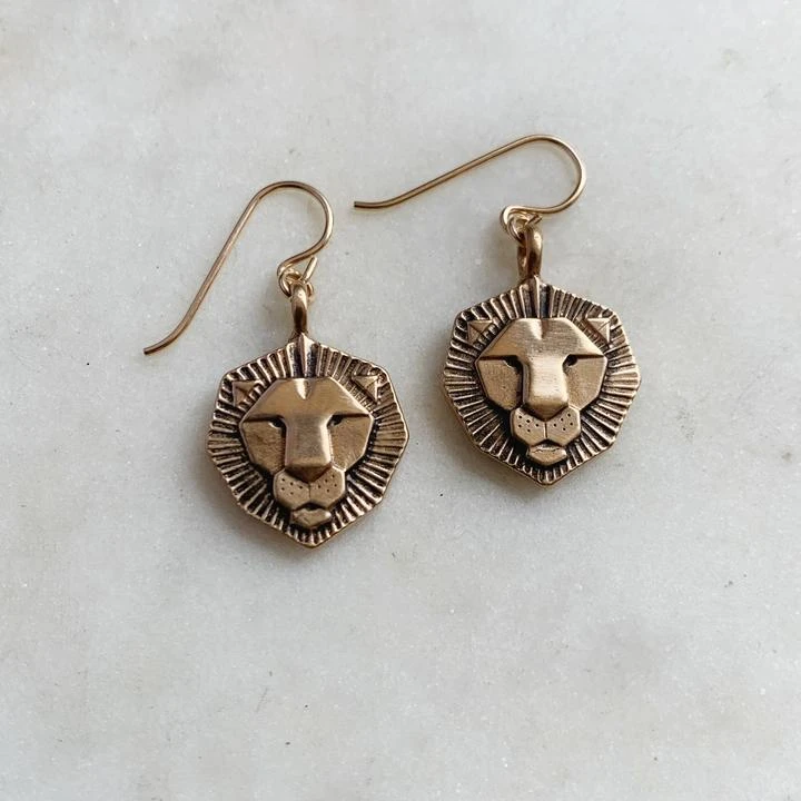 Each lion charm measures approximately 3/4″ x 3/4″ and hangs from gold filled or sterling silver ear wires.