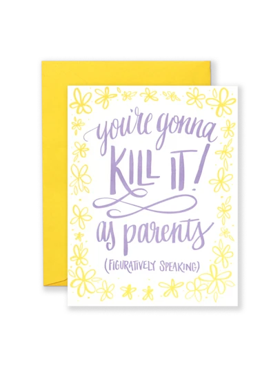 Know a lucky couple who are about to add a pint-sized person to their hearts, budgets, and Google calendars? Send your encouragement with this cheeky greeting card for new or expecting parents. You know they’ll knock it out of the park (figuratively speaking).Â