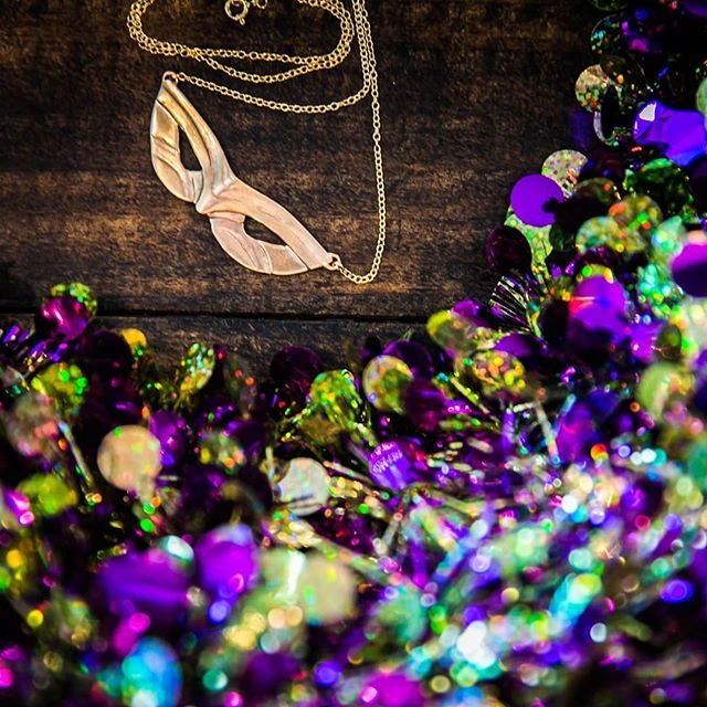 Be The Queen Of Mardi Gras! The Mardi Gras Mask Necklace embraces the carnival spirit in this delicate mask that lays elegantly on your décolletage