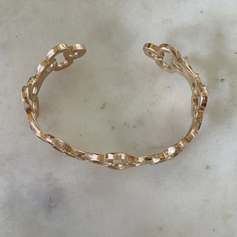 The cuff measures approximately 2-1/4″ in diameter on the inside and is adjustable.Â