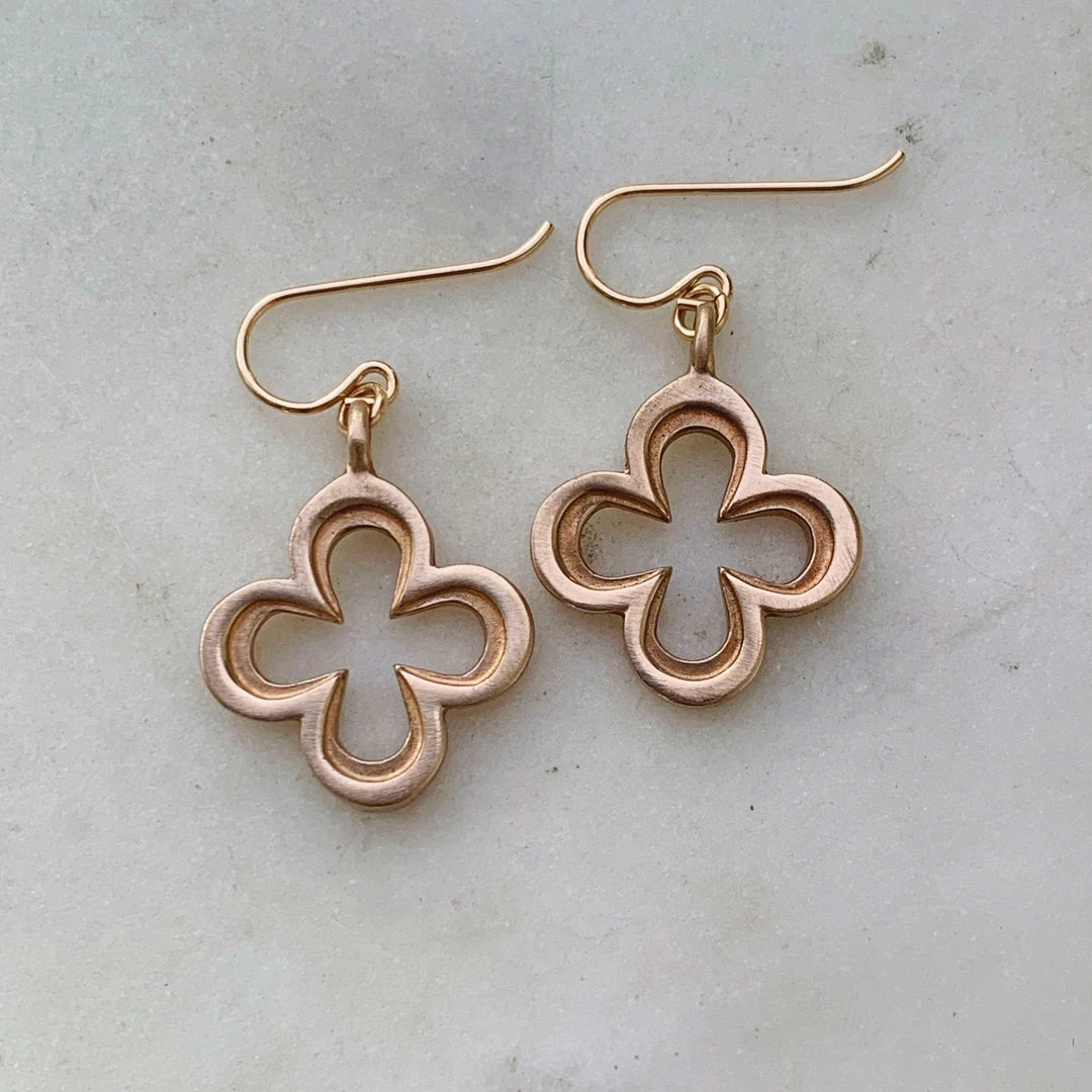 The Quatrefoil Earrings are inspired by the architectural elements evident throughout the Old State Capitol as windows and wood carvings.Â