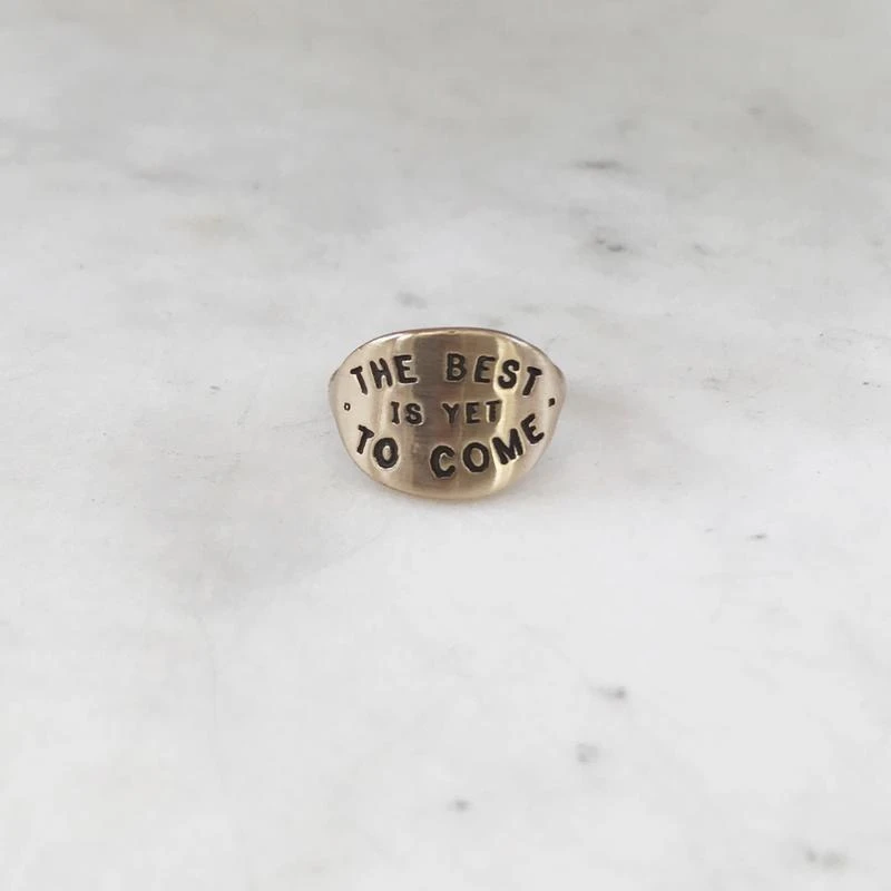 Wear The Best Is Yet To Come Ring as a daily reminder to keep on keepin’ on. This ring is hand-stamped stamped in bronze.