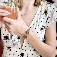 The bangle is slightly adjustable measures approximately 2-1/4″ in diameter on the inside.