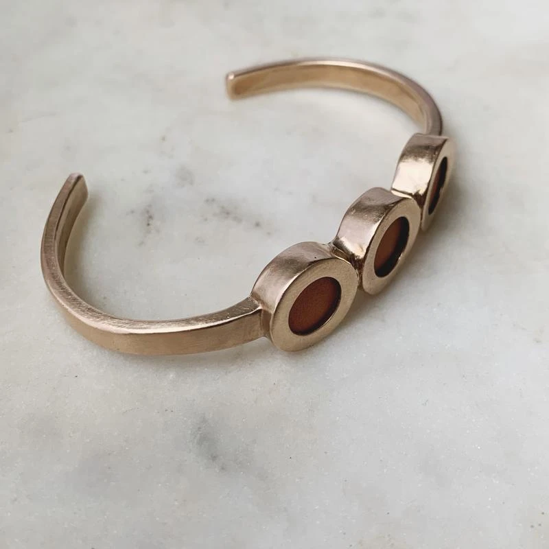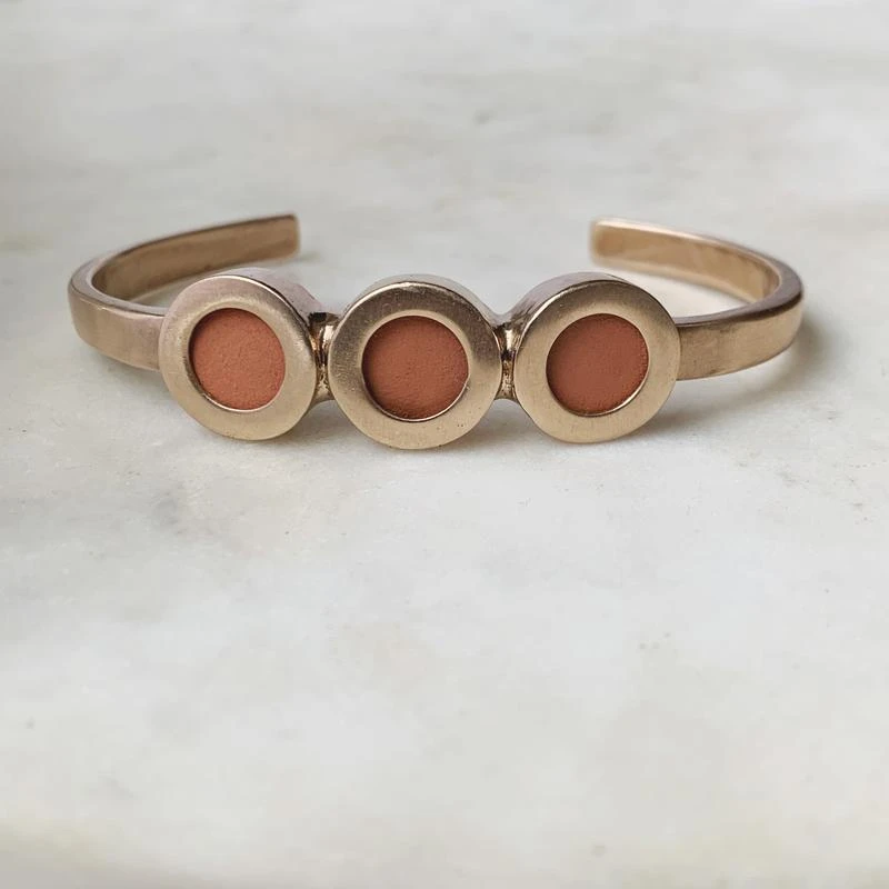 The Essential Oil Diffuser Cuff is a stylish way to diffuse your favorite oils, on the go! Simply add a drop of your favorite essential oil to the terra cotta disc and the scent will last up to a couple of days!  *Make sure not to wear it while gardening or any heavy lifting, trust us from experience.Â