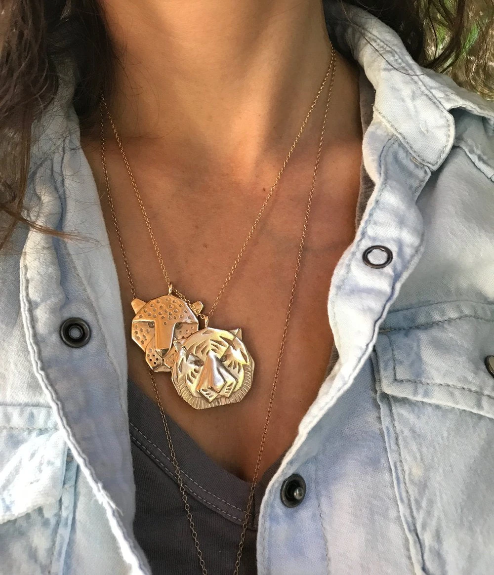 Each Large Tiger pendant measures approximately 1″ by 1″. Comes on 18″, 24″ Chain or you can choose to purchase the Pendant Only.