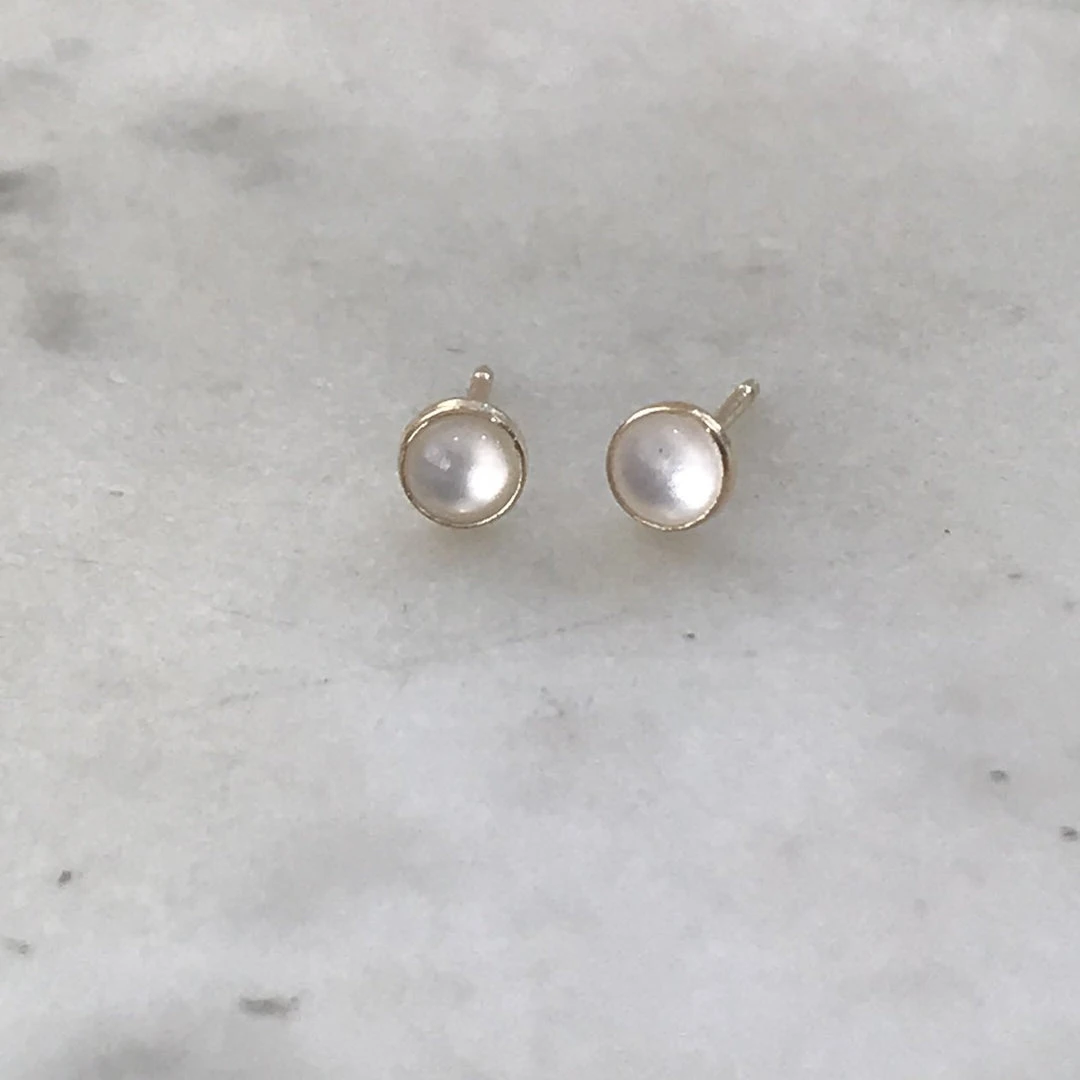 The 4mm Mother Of Pearl Studs are the perfect size for everyday wear! The mother of pearl stones add an eye-catching charm to these delicate, but trendy stud earrings.Â