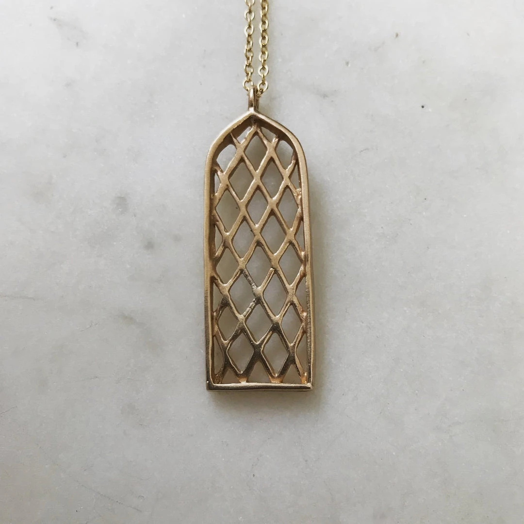 Inspired by the stained glass windows at the Old State Capitol, the Window Necklace features ornate gothic details that are an iconic feature in Louisiana architecture.Â