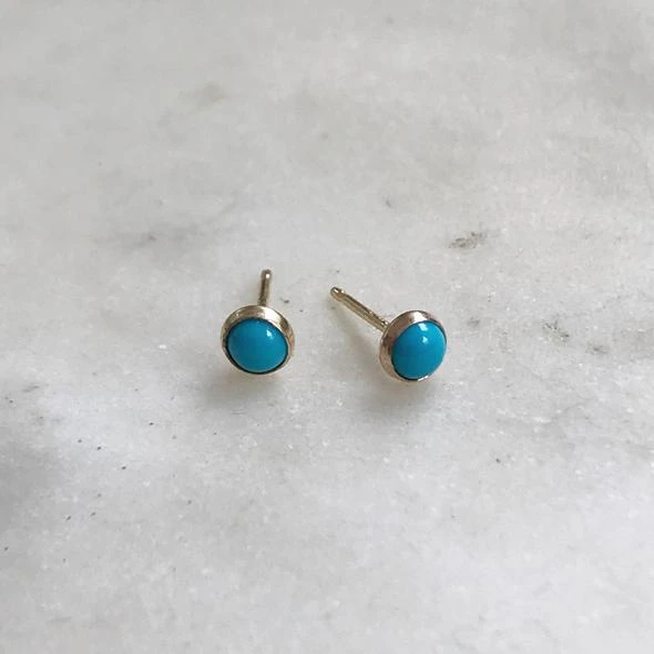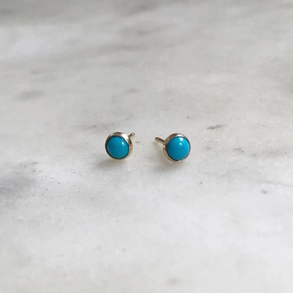 The 4mm Turquoise Studs are the perfect size for everyday wear! The vivid turquoise stones add an eye-catching charm to these delicate, but trendy stud earrings.Â