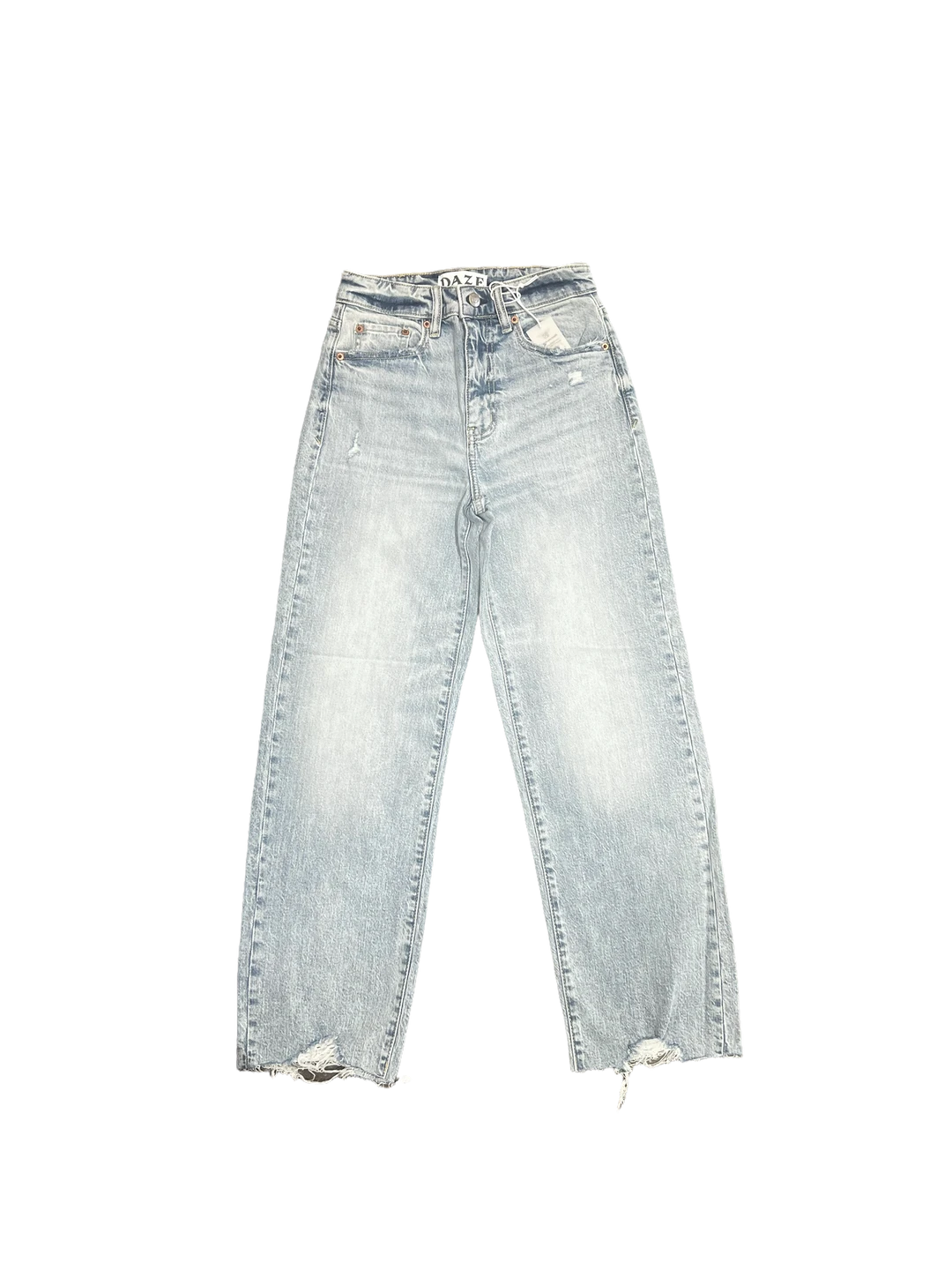 Light-Wash, High-Waisted, Minimal Destruction, Ripped Bottom, Cropped Length