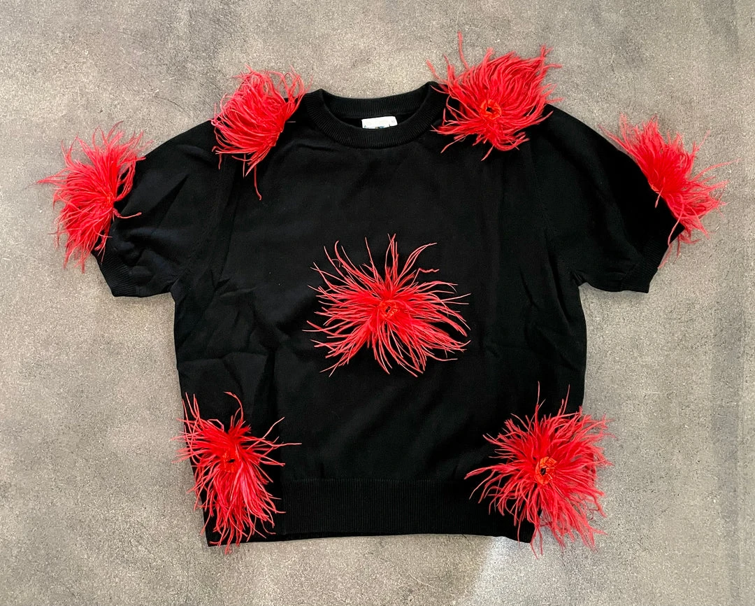 Queen of Sparkles Black & Red Short Sleeve Sweater