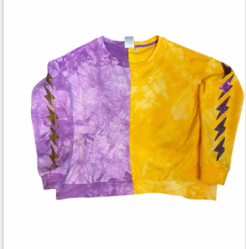 Purple and Gold Sweater with Lighting on the Sleeve