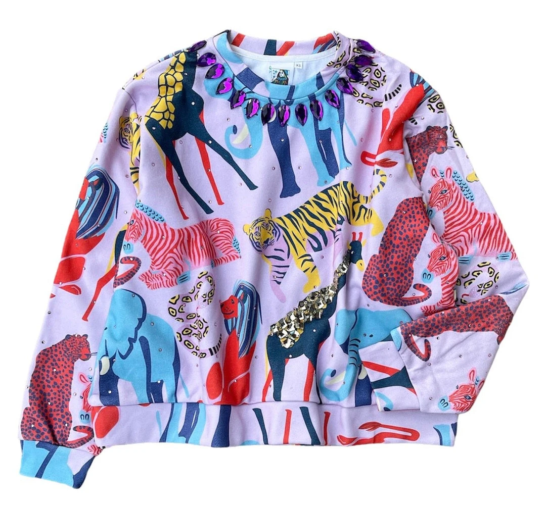 Jewel Jungle Rhinestone Printed Sweatshirt