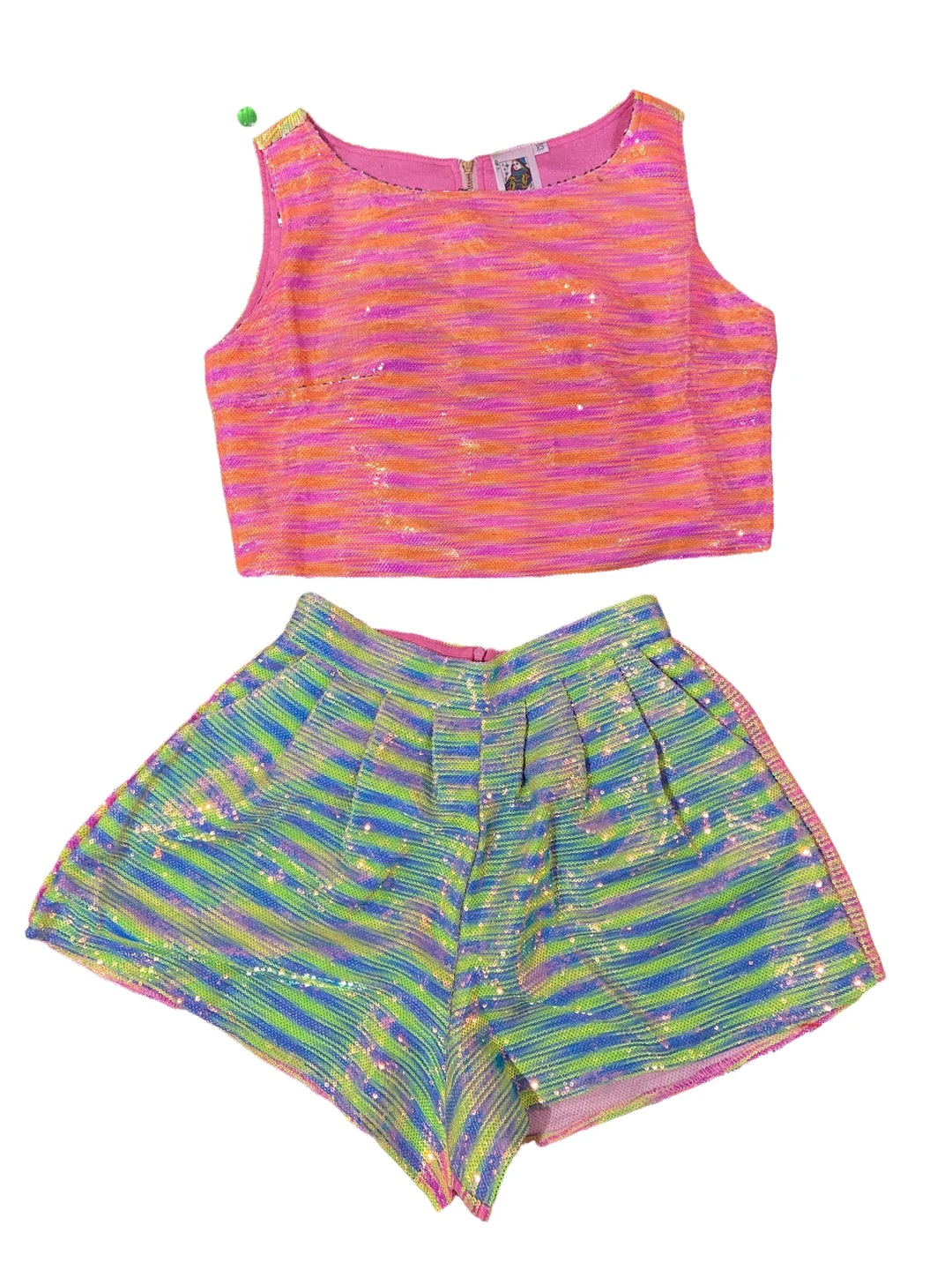 Queen Of Sparkles Neon Sequin Stripe Shorts