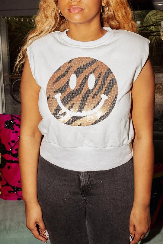 Striped Smiley Shoulder Pad Sweatshirt TankÂ