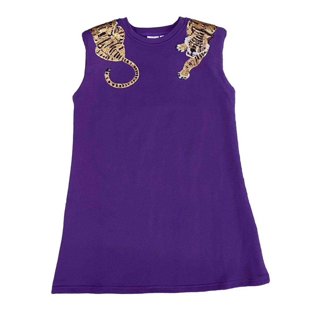Queen of Sparkles Purple Shoulder Pad Tiger Dress