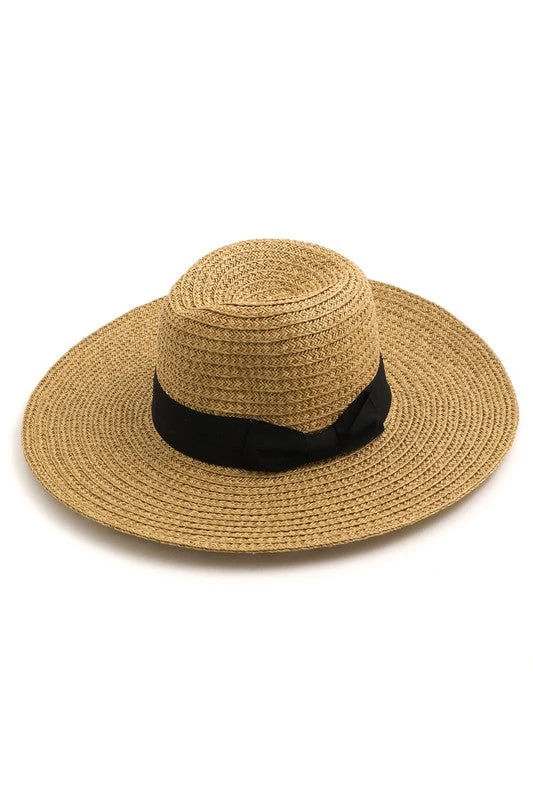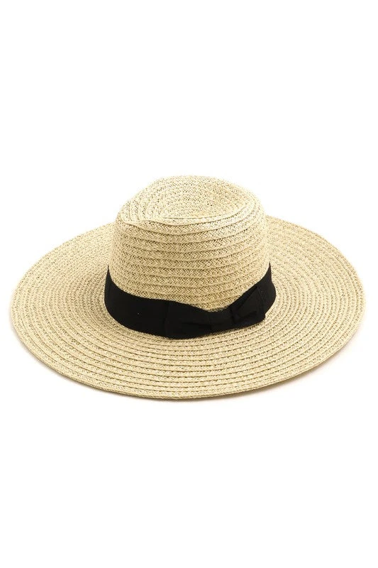 Bow Tie Straw Weave Hat; Bow tie color: Black
