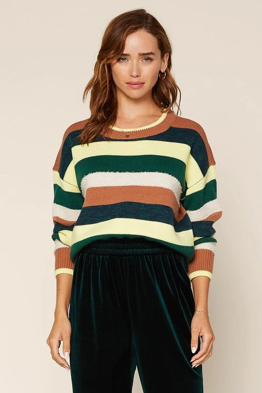 Long Sleeve Knit Multi Striped Sweater