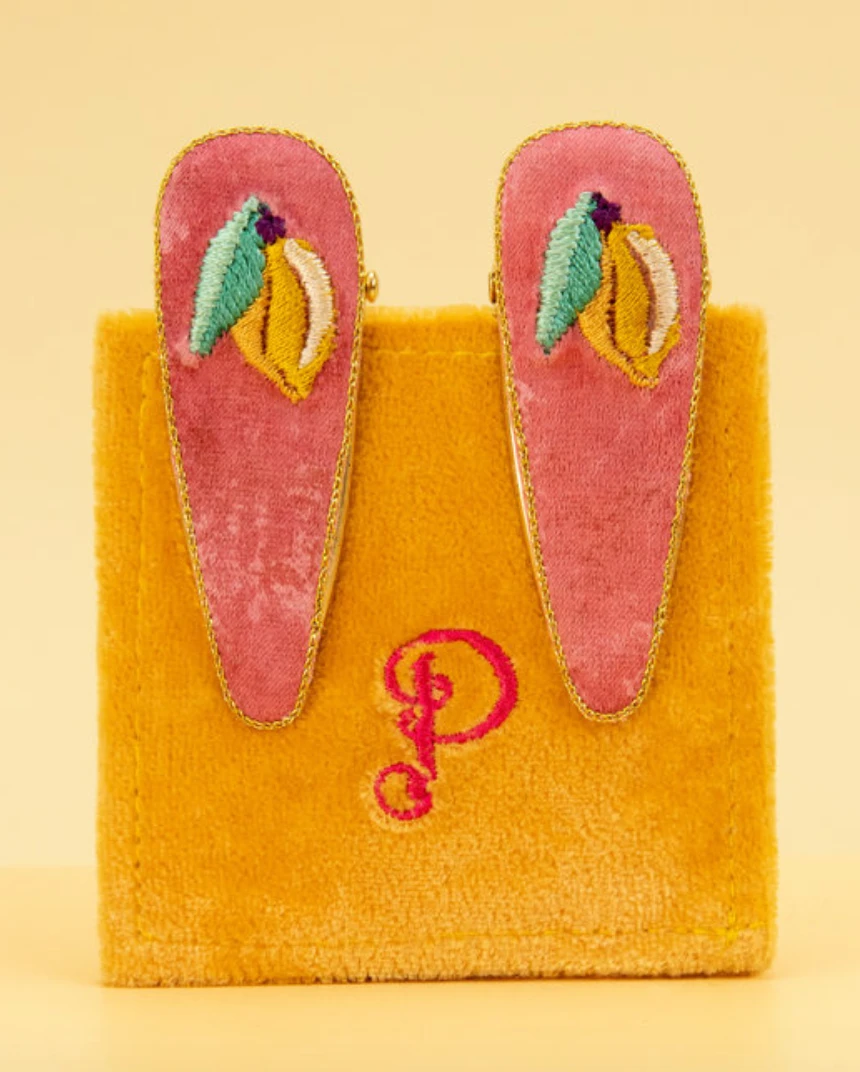 Our hair clips offer just the right amount of cuteness to your look and these cheeky lemons will have you dreaming of Sicily. Presented on a velvet card for gifting, these come with a teeny tiny complimentary Powder gift bag as well to treat that special someone, or yourself!