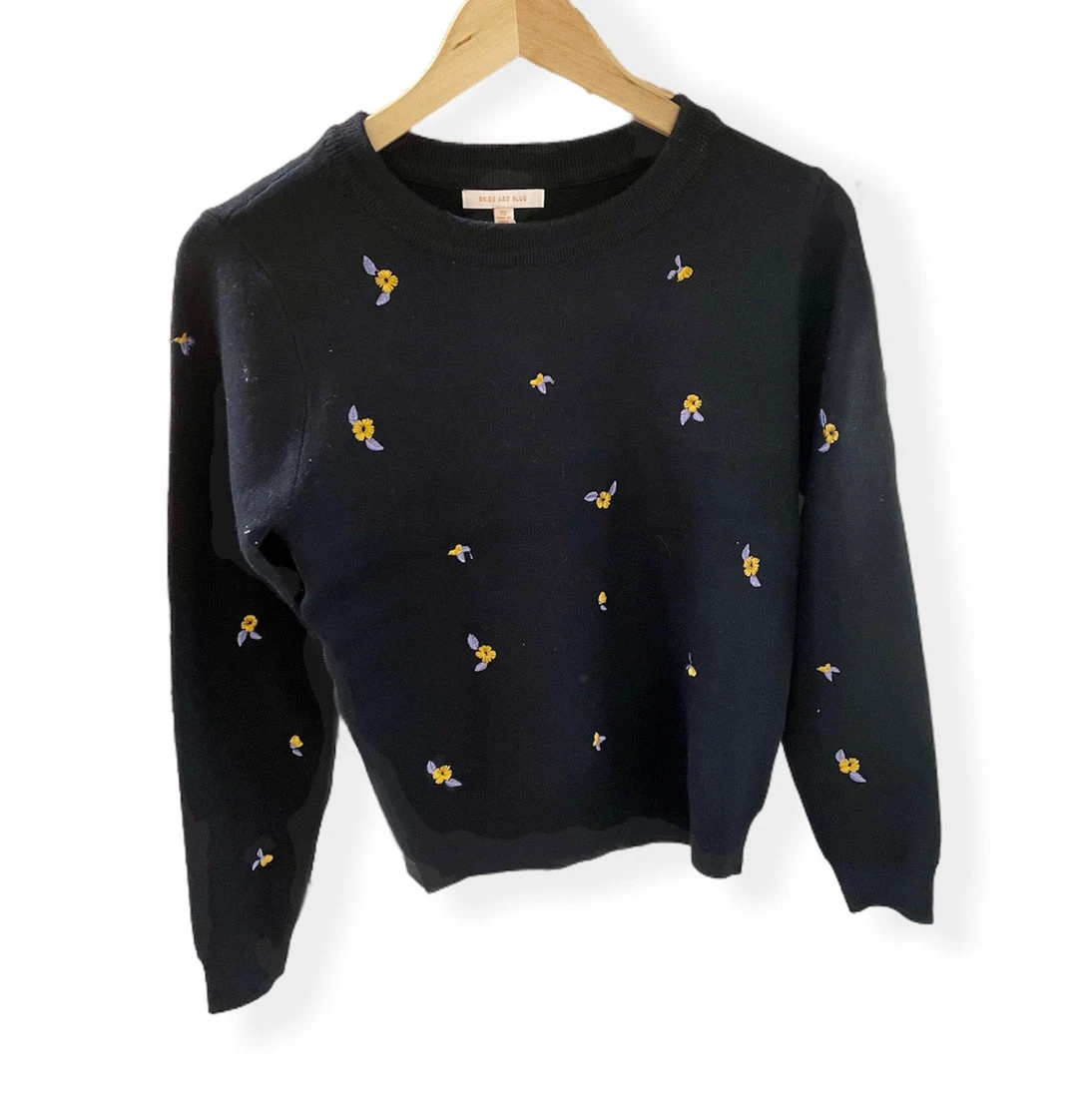 Purple and Gold Flower Embroidered Sweater