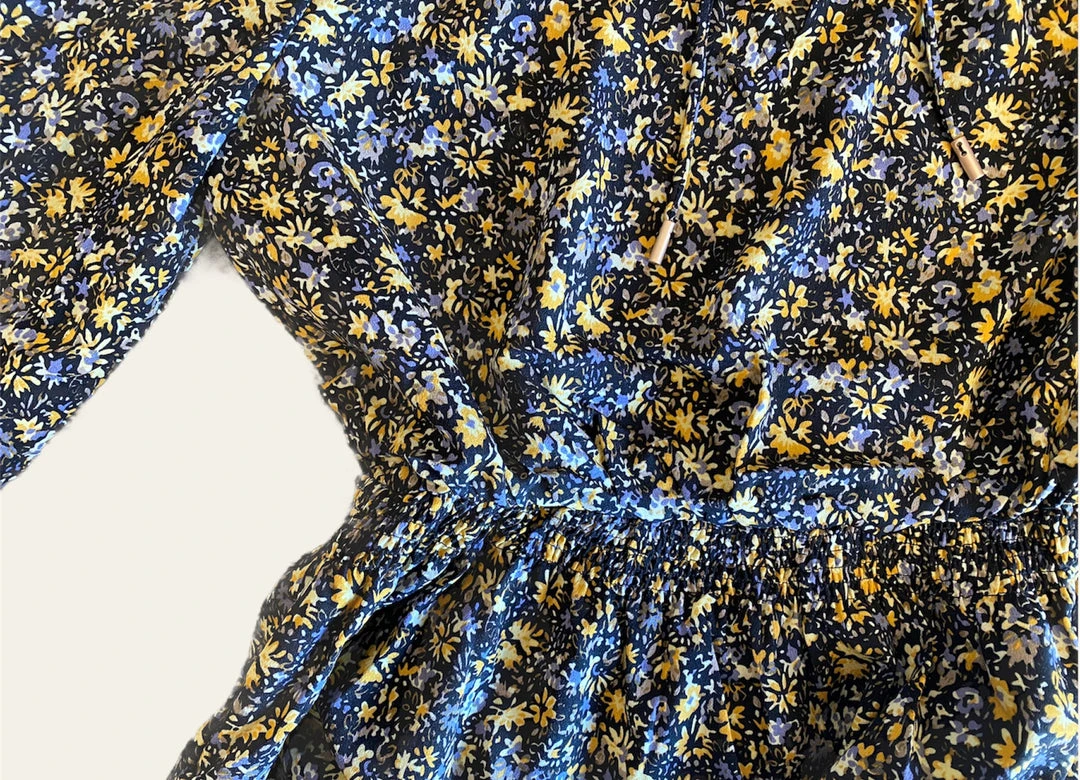 Ditsy Floral Smocked Waist Long Sleeve Top