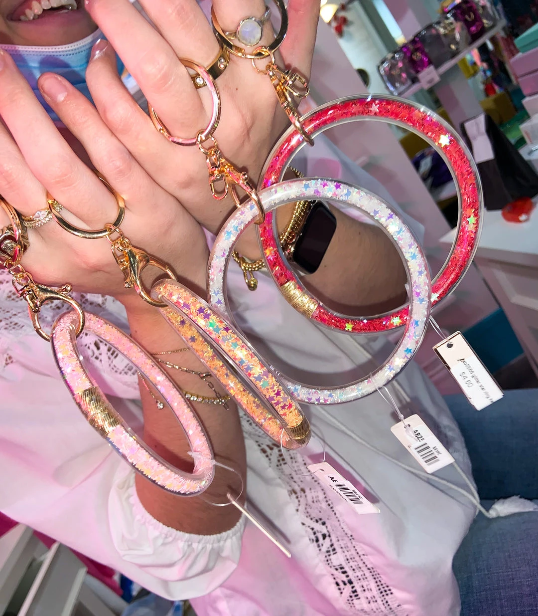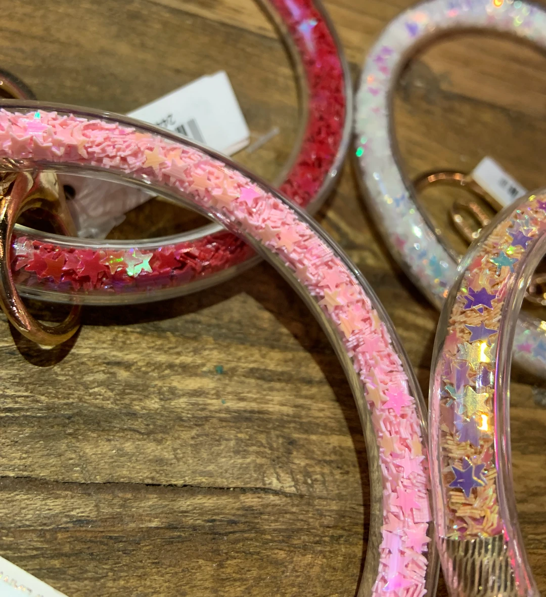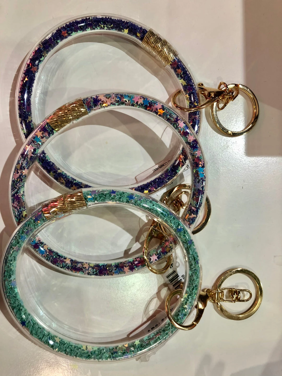 Clear key ring bracelets filled with glitter stars!