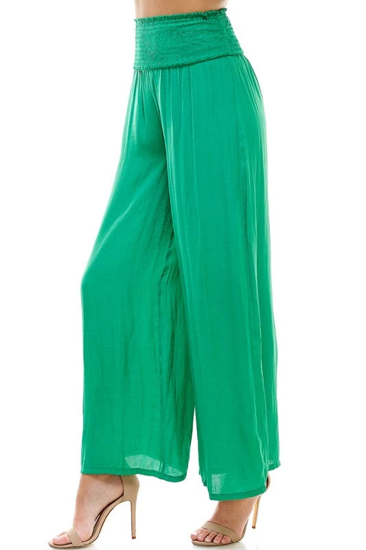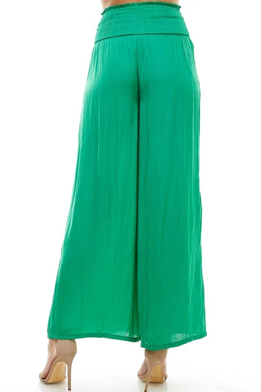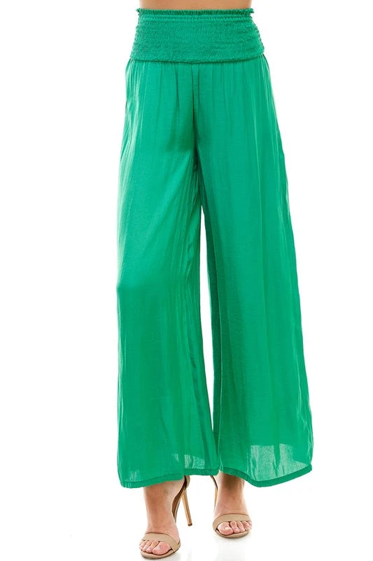 -high rise, smocked waist, flowy pants