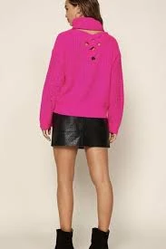 Hot Pink Sweater with Criss Cross Detail in the Back