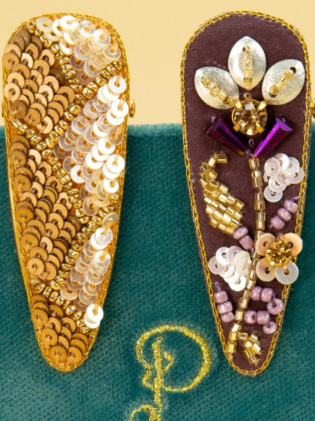Our hair clips offer just the right amount of cuteness to your look and these jeweled ones have that extra embellishment for those that want to dazzle. Presented on a velvet card for gifting, these come with a teeny tiny complimentary Powder gift bag as well to treat that special someone, or yourself!