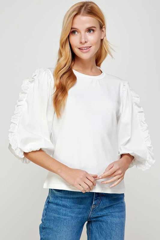 Lace Trim Sleeve Poplin Top