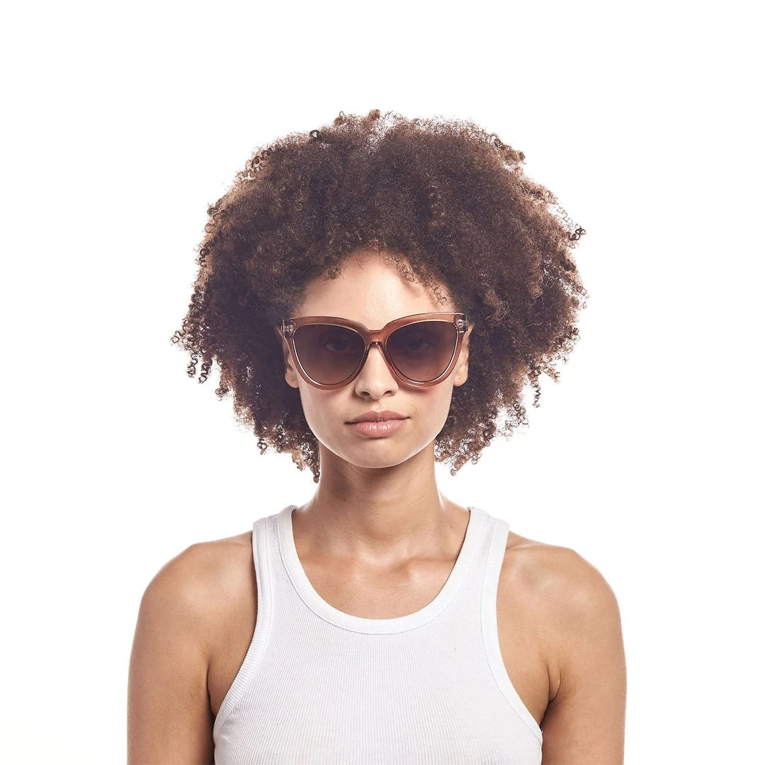 Sharp and sexy, this thick-framed oversize cats eye style offers an everyday look for all face shapes. Finished with a modern flat profile and iconic Le Specs flagstripe metal hardware. Polarized lenses are fitted to eliminate unwanted reflective glare.