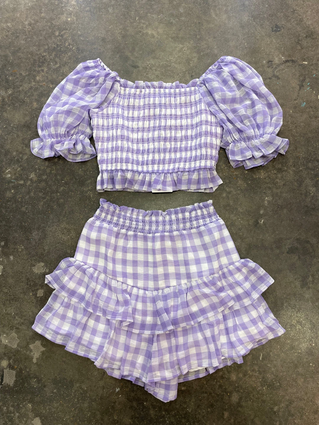 Goes perfectly with Our Lilac Gingham Print Smocked TopÂ