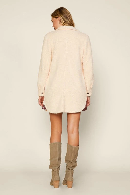 Long Sleeve Textured Knit Midi Button Down Shacket