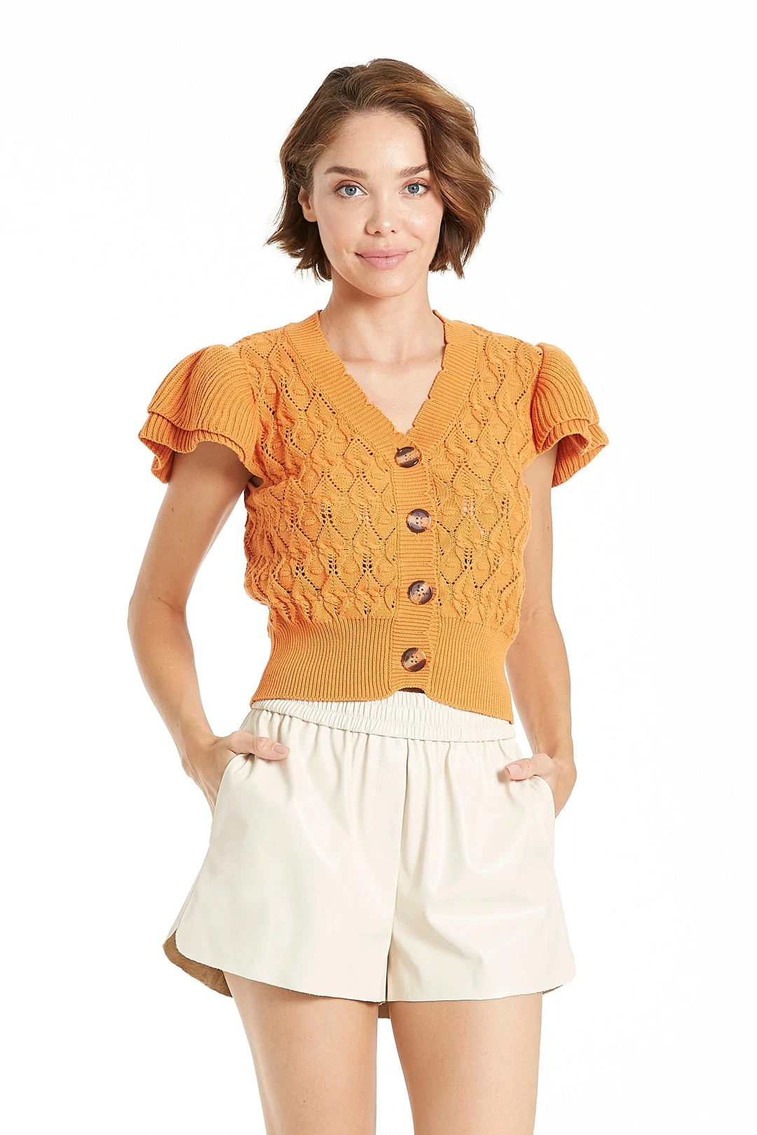 - Short Sleeve Cardigan Finished With Pointelle Repeats