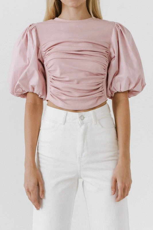 Mixed Media Puff Sleeve Top