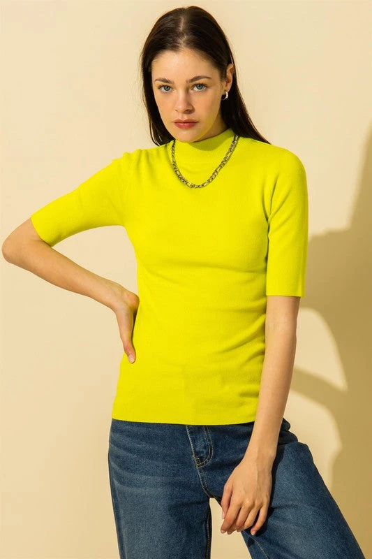MOCK NECK ELBOW SLEEVE SWEATER