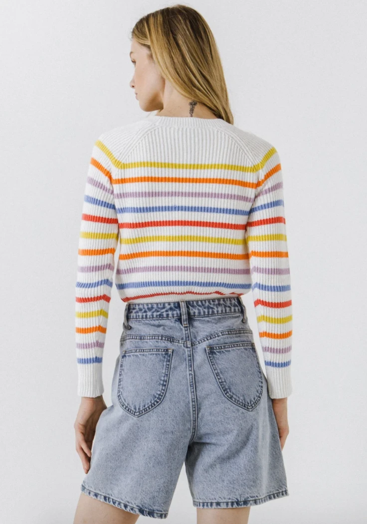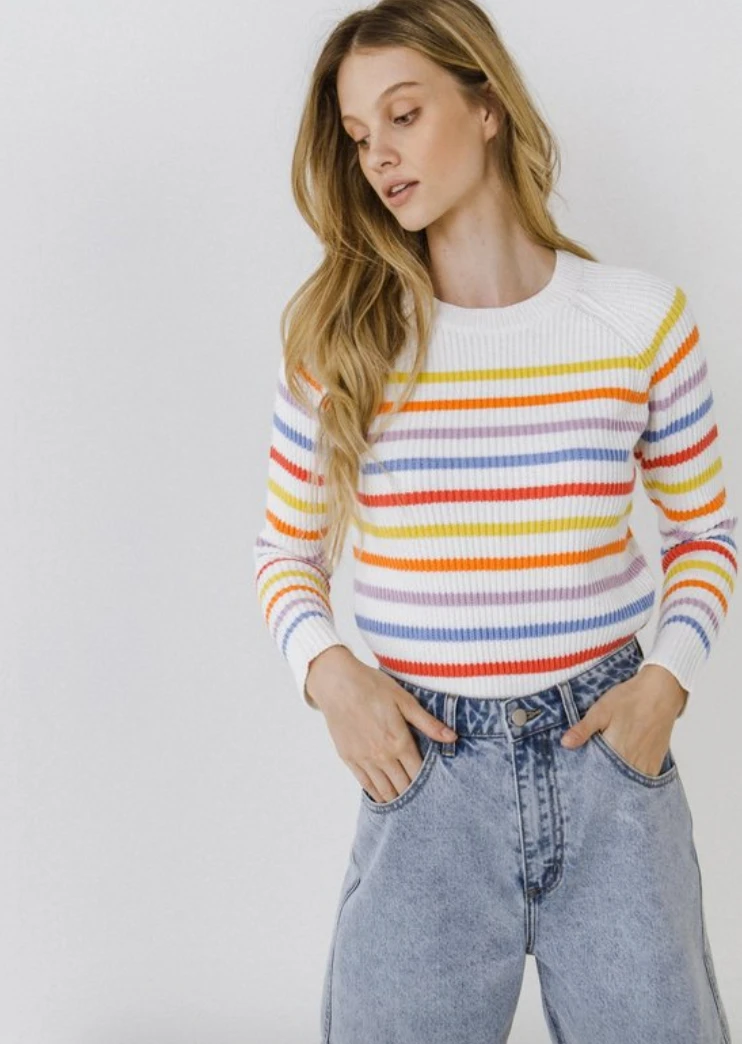 Multi-Colored Striped, Round Neckline, Long Sleeves.