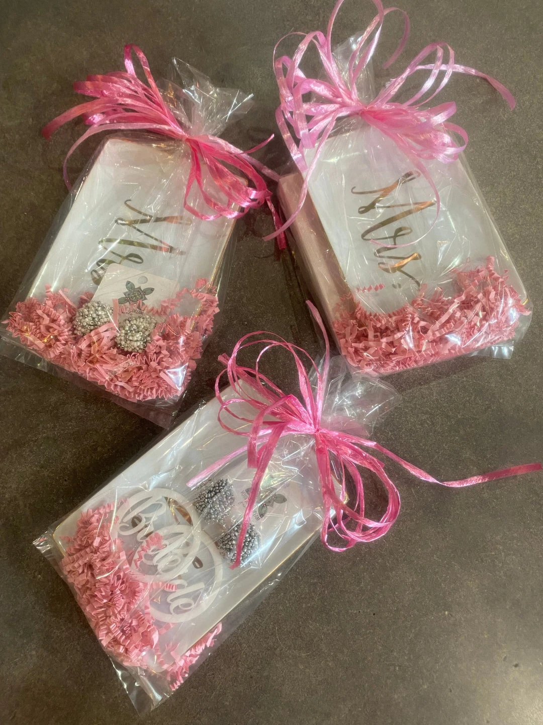 2) “Mrs” jewelry tray + “BRIDE” Acrylic Dangle Earrings