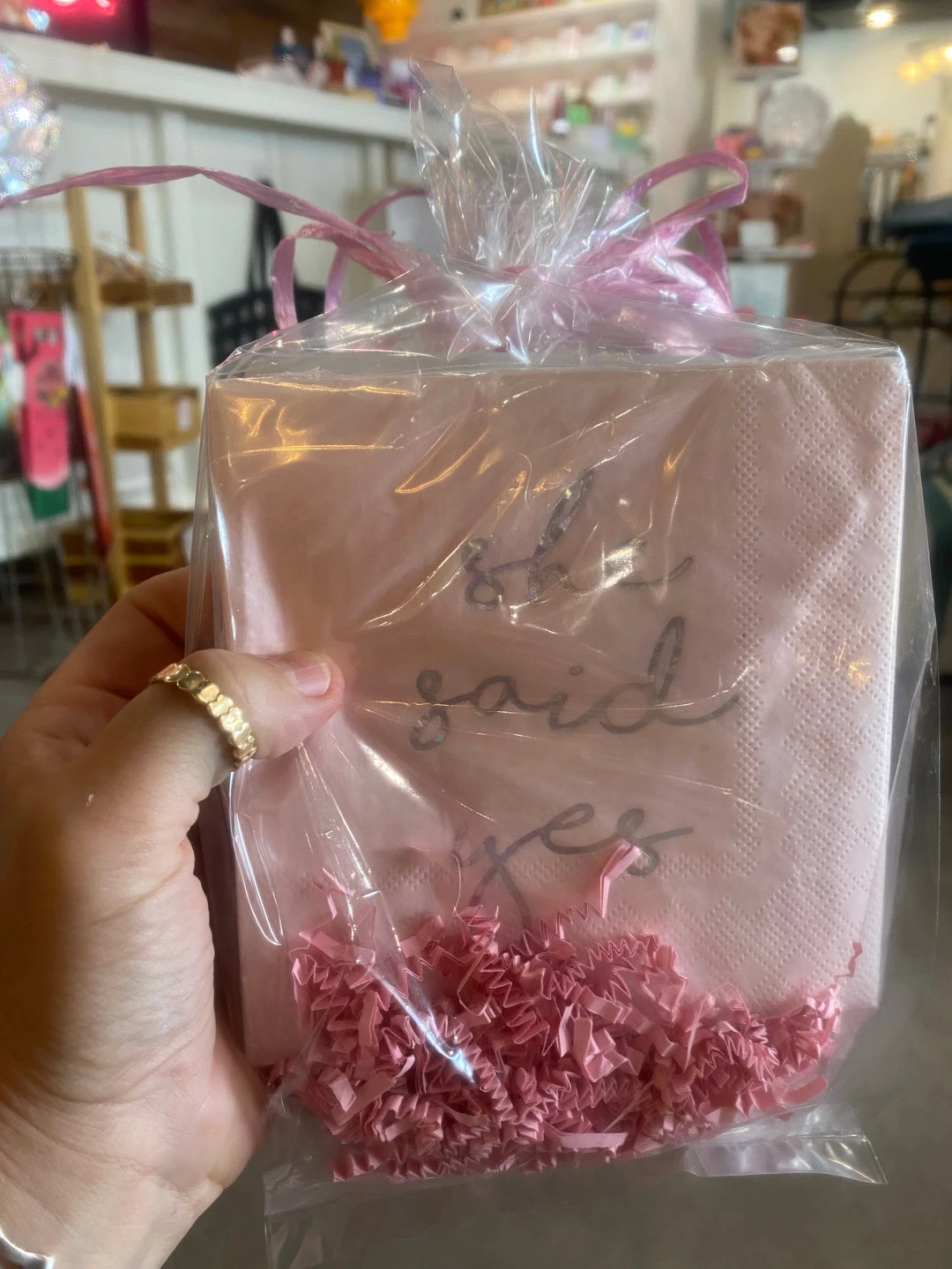 1) “Mrs” jewelry tray + “She Said Yes” Napkins
