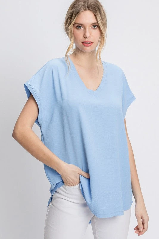 Solid Top With Short Cap Sleeves And Raw Edge Hems. Unlined, Non-Sheer, Lightweight.