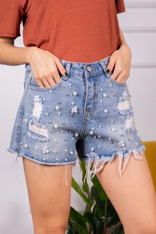 Be the first to review “Wanderlust By Abby NEW Denim Shorts With Pearl Embellishments” Cancel reply
