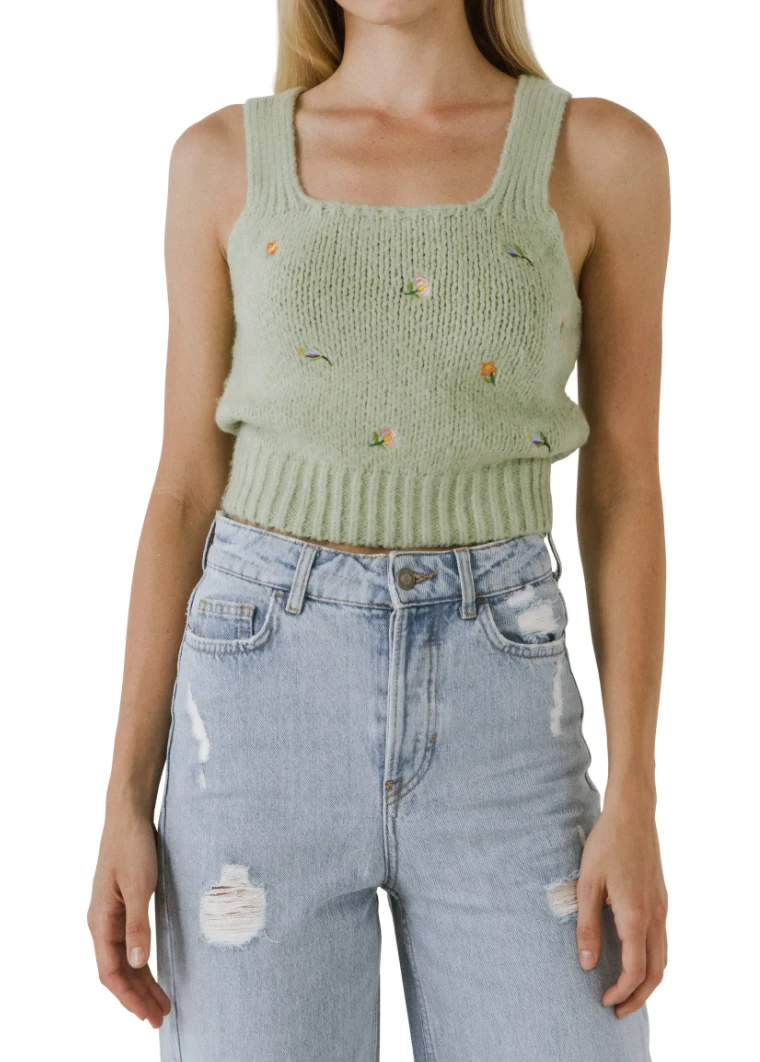 - Embroidered Sweater Tank