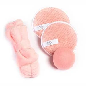 1 plush bow spa headband, 2 cleansing pads + 1 konjac sponge.