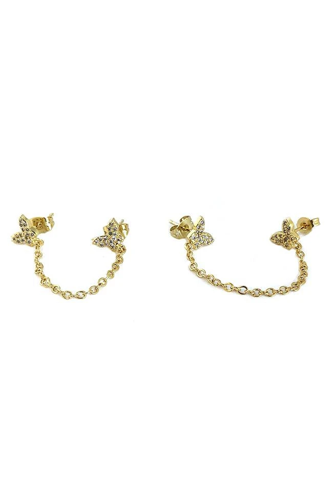 Double Hole Pave Micro Butterfly Earring