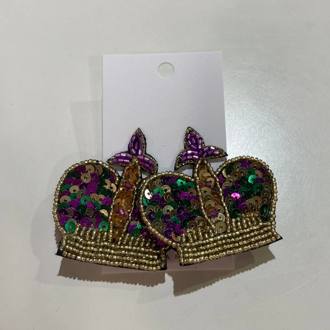 These earrings are a fun accessory to wear for the Mardi Gras season!