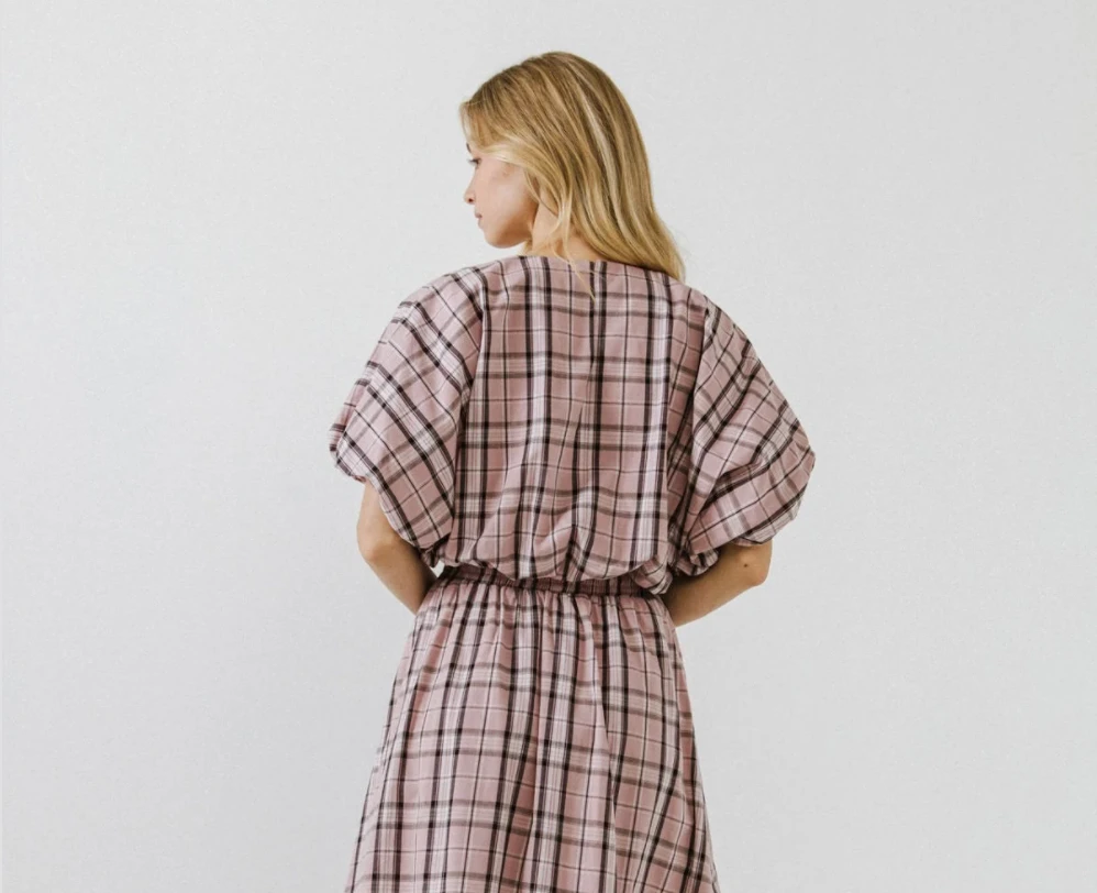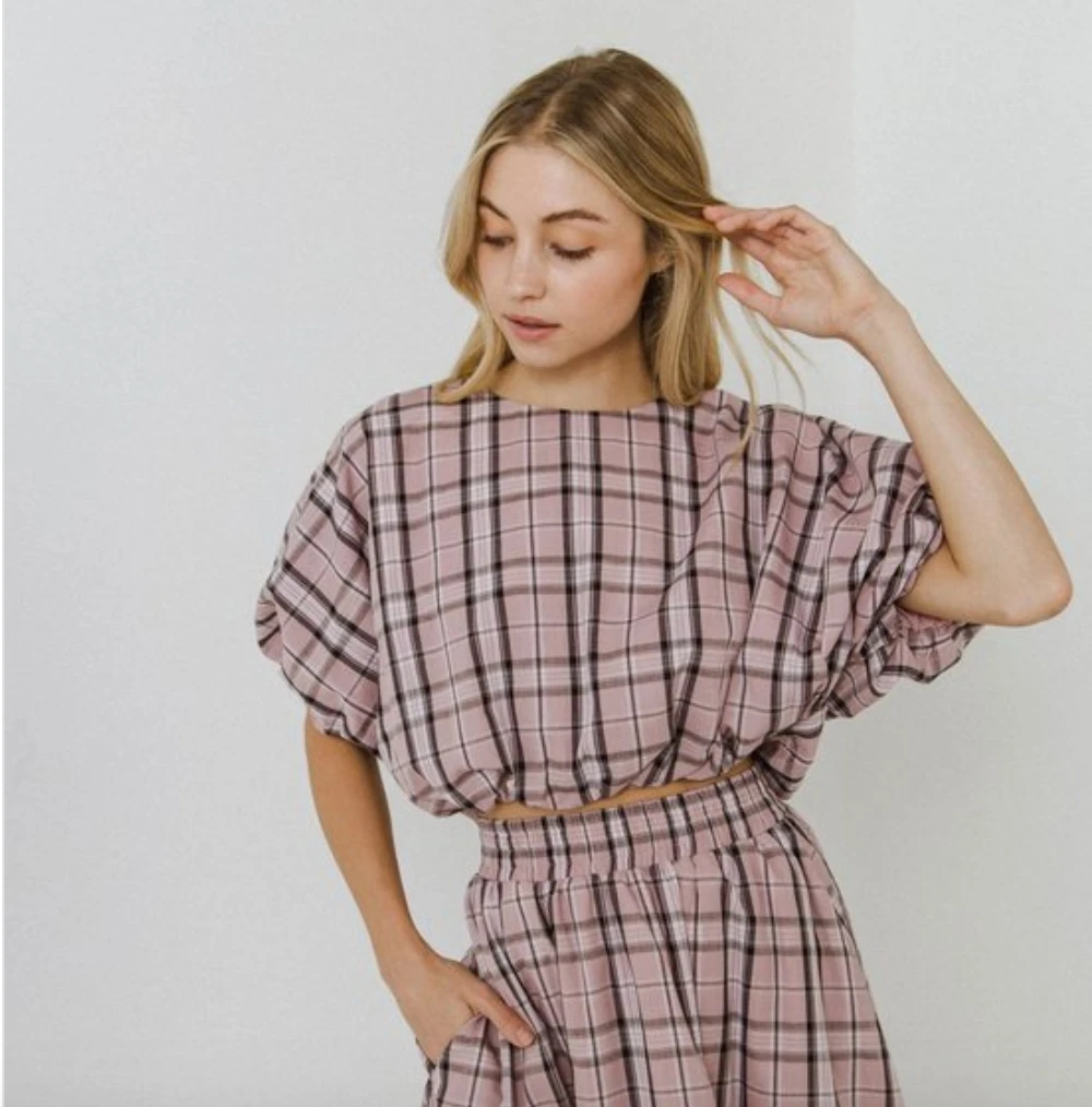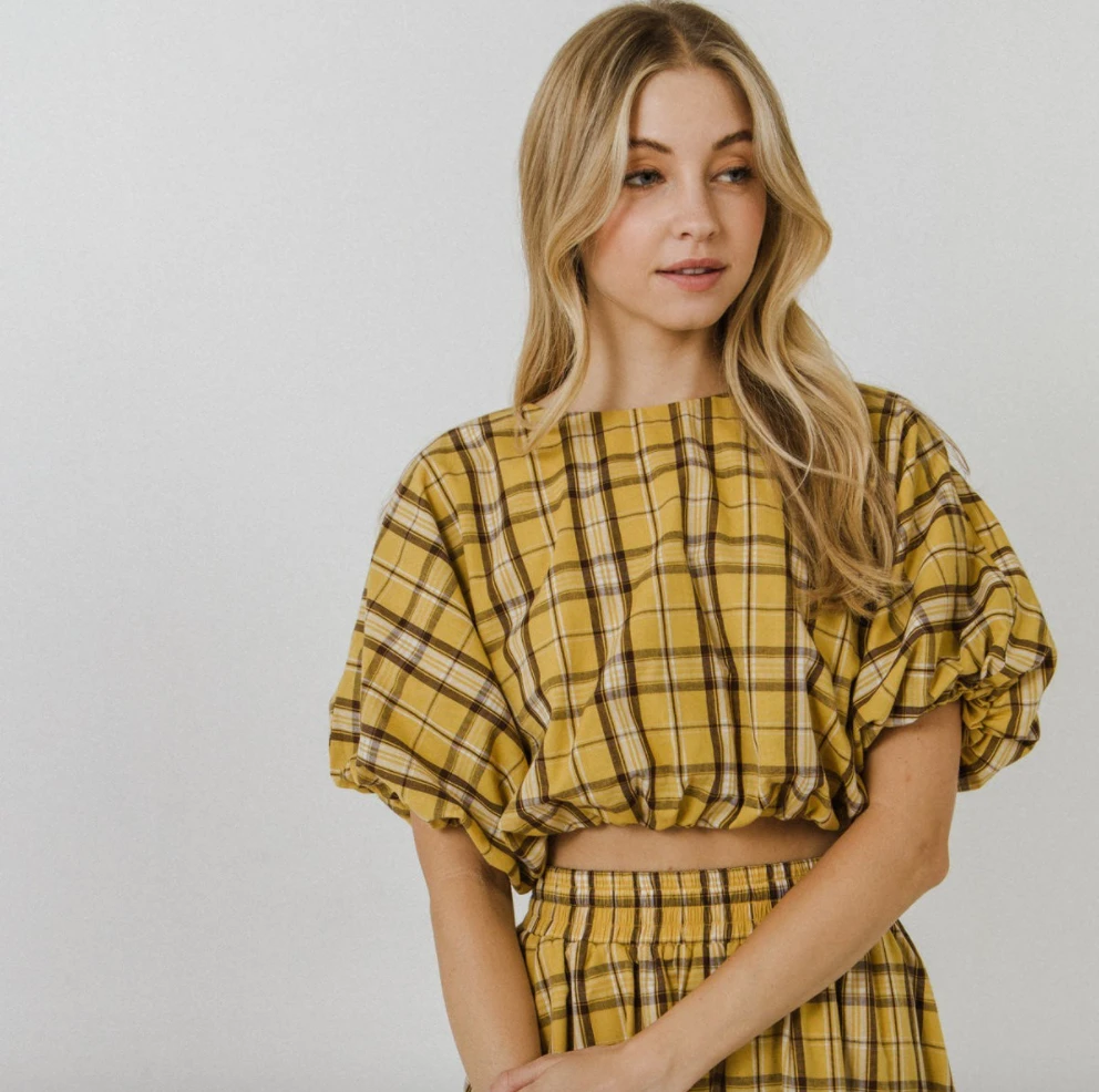 Description:Â Plaid Voluminous Cropped Top