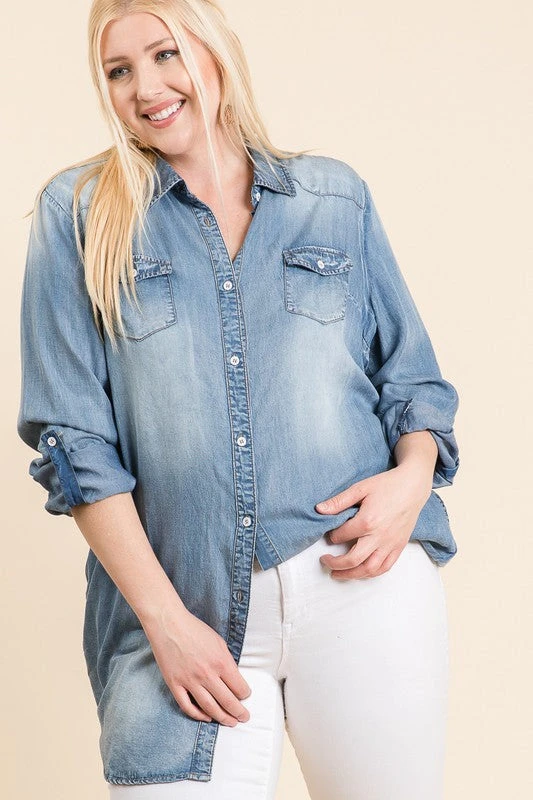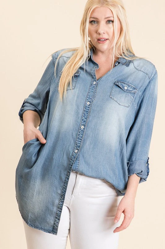 Denim Long Blouse. You Can Wear It As Outwear Or Tie The Front And Make It CroppedÂ