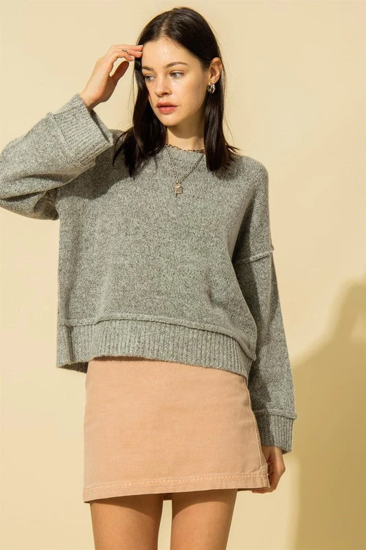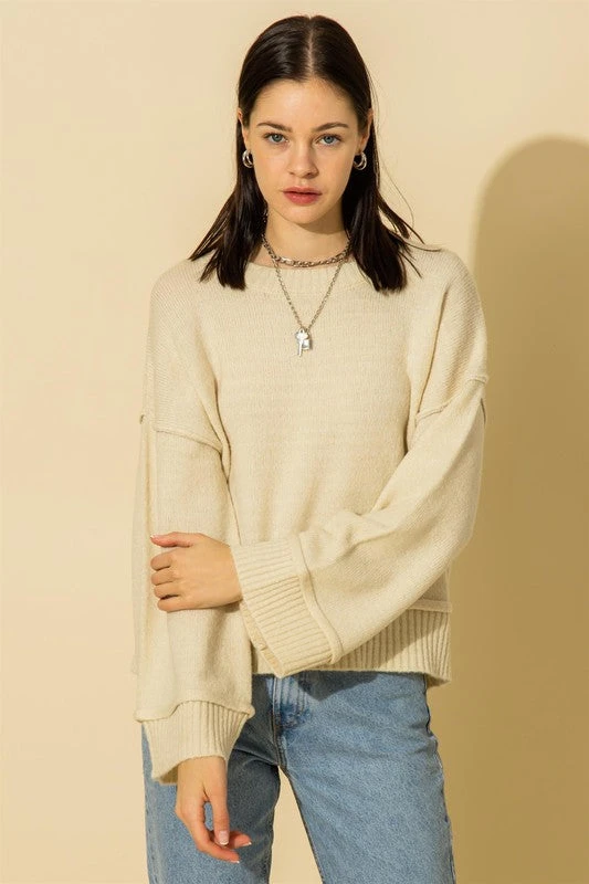 ROUND NECK WIDE SLEEVE PULLOVER SWEATER