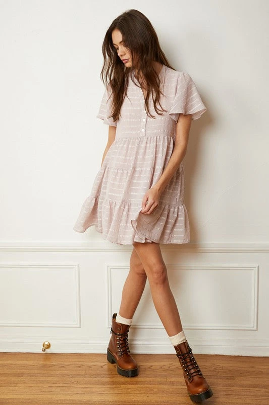 Woven Crepe short sleeve ruffle baby doll dress w/ lining
