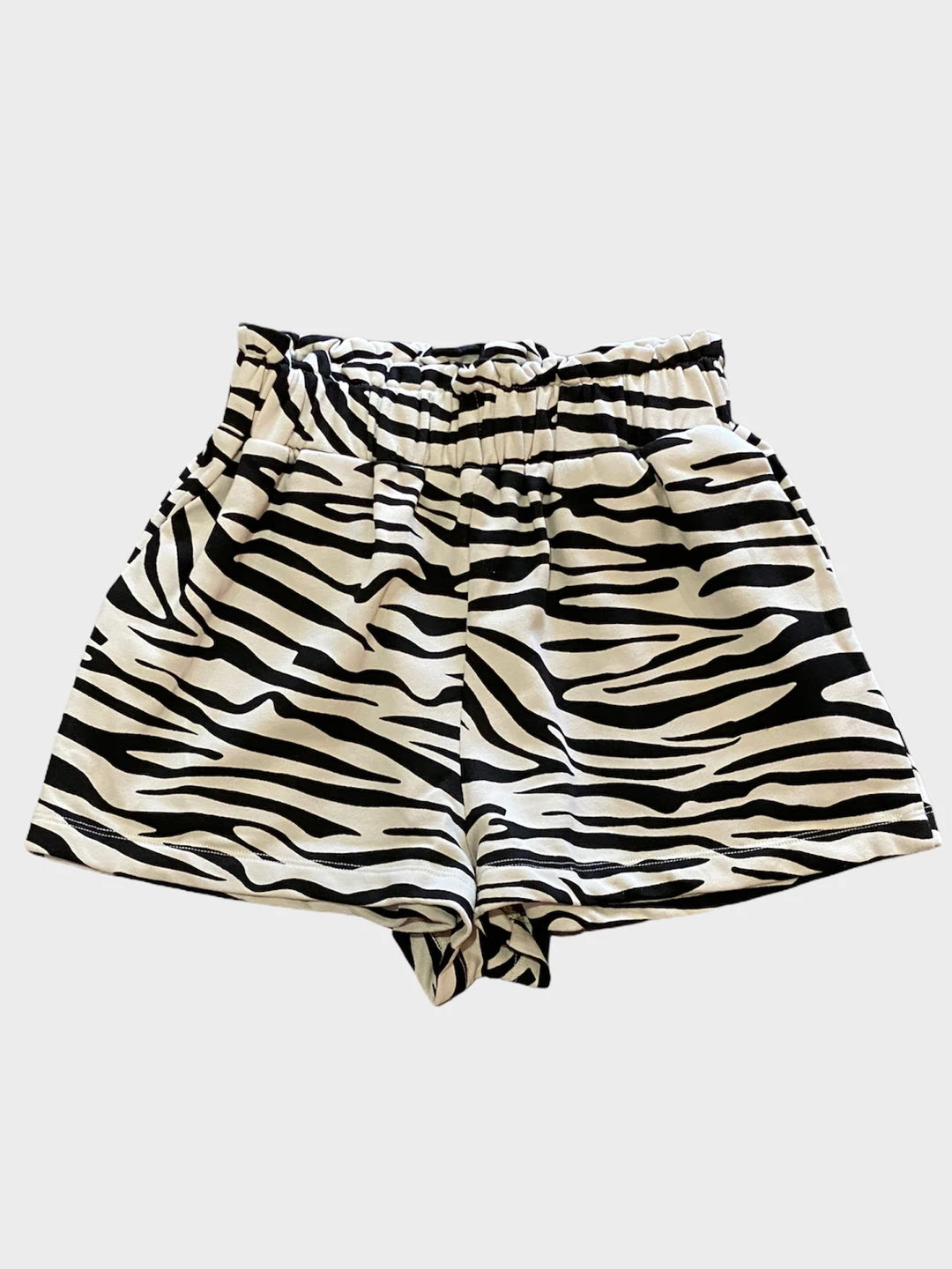 Beige Multi Zebra Shorts With Elastic Waist AND Pockets!