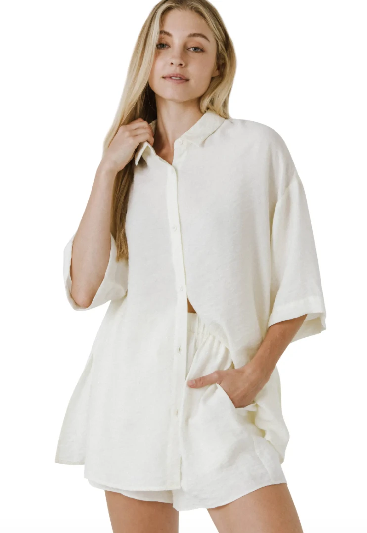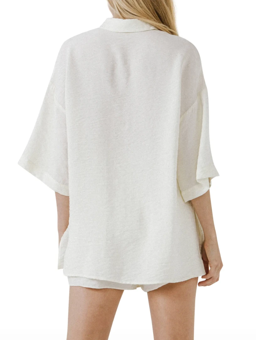 - The classic button-up comes through for weekend wear with an oversize fit and elbow-length sleeves